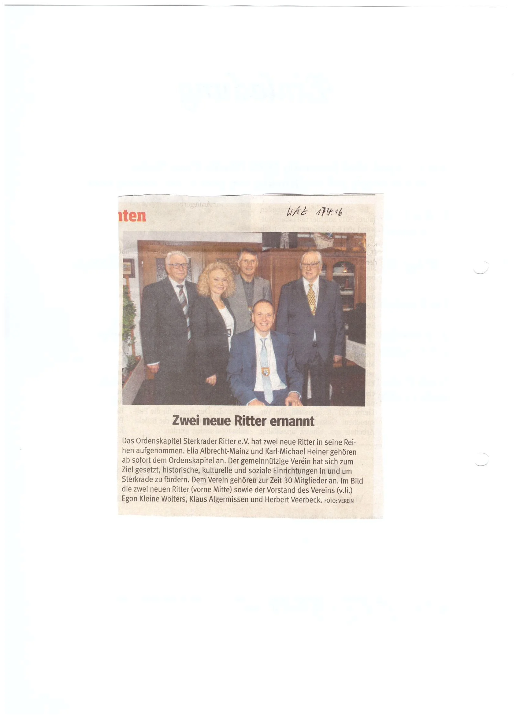 Im Bild die zwei neuen Ritter (vorne Mitte) sowie der Vorstand des Vereins (v.li.) Egon Kleine Wolters, Klaus Algermissen und Herbert Verbeck.